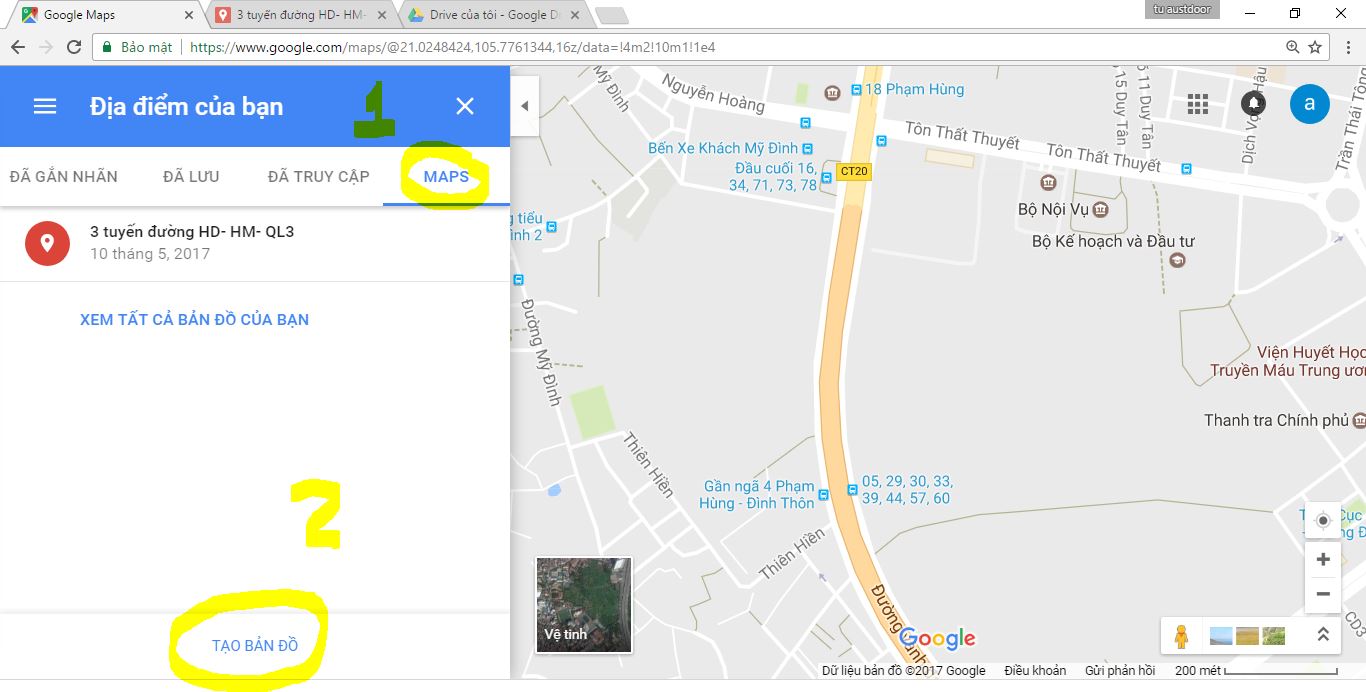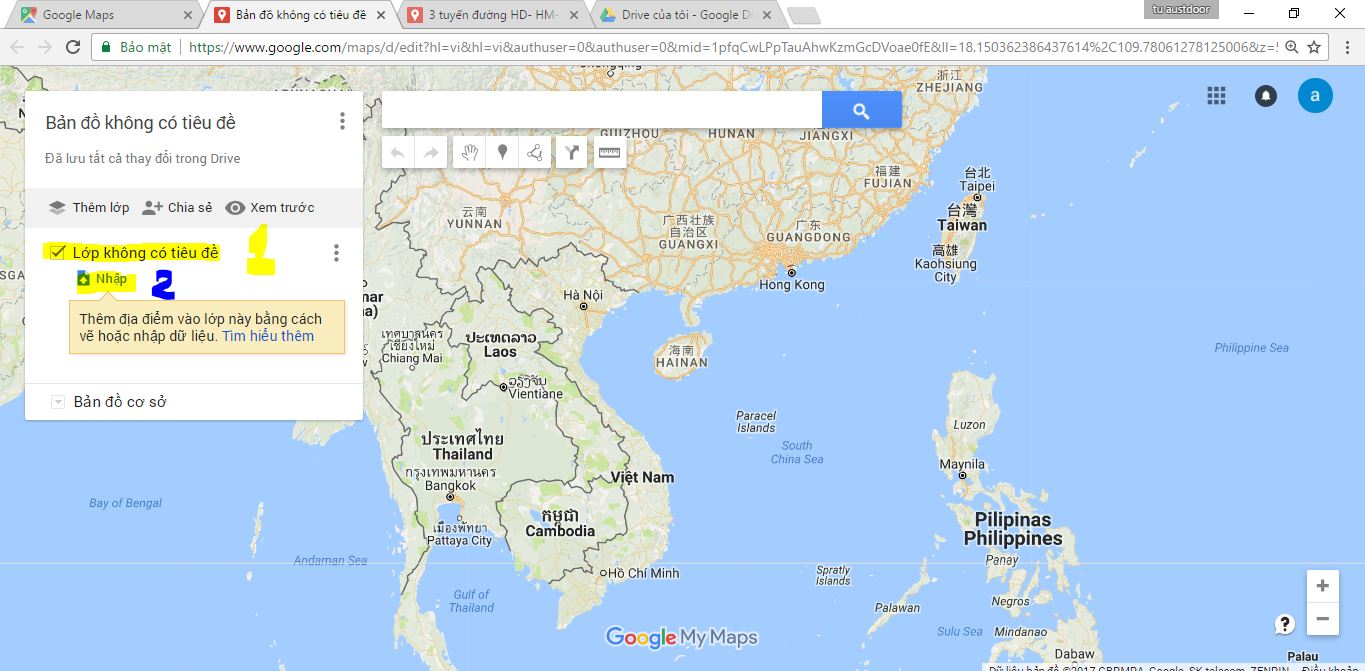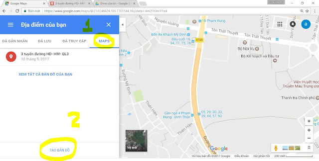 Bước 2: tạo bản đồ riêng – vào google máp và chọn như hình 2 + 3