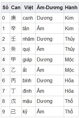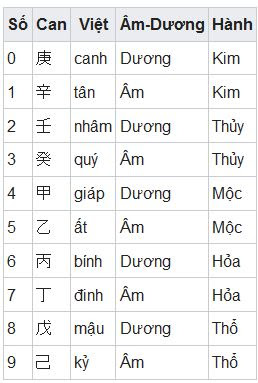 - Ất, Đinh, Kỷ, Tân, Quý là Âm can
